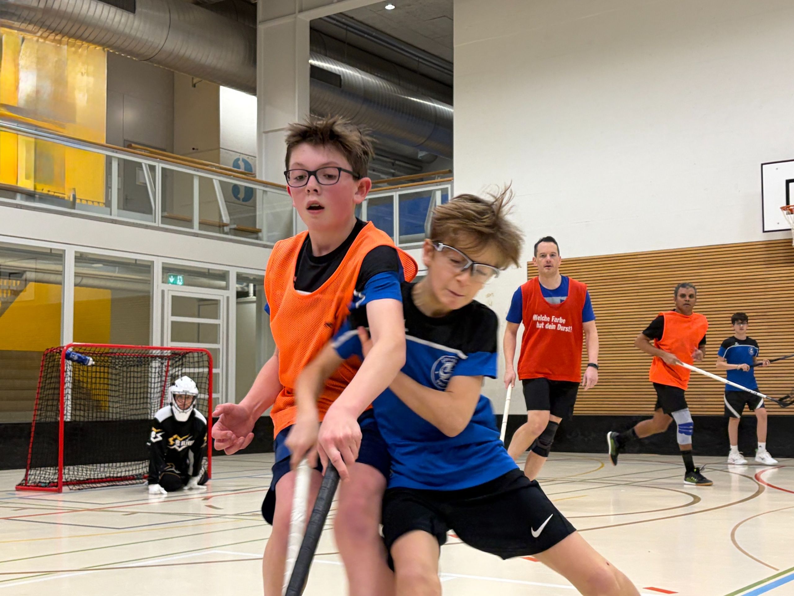 Am Spielfeldrand blieb Zeit für kurze Gespräche, gemeinsames Snacken oder spontane Schusstrainings-Einheiten der älteren Junior:innen für die Kleinsten.